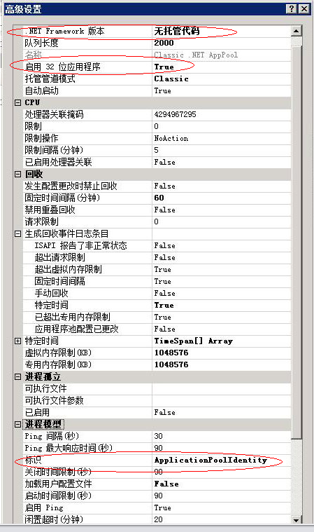 还有一个就是应用程序池,先要设置应用程序池(Application Pool)为Classic .NET AppPool,而不是默认的Default AppPool,可以在网站目录里对每个站点设置,也可以在站点进行单独设置。选择好要设置的站点之后,点右边的“基本设置”即可调出应用程序池设置对话框。