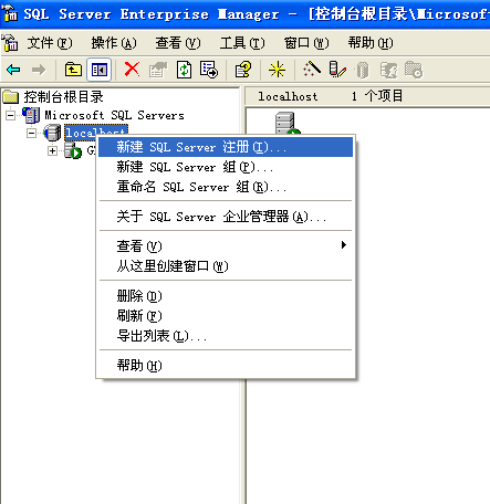 1、第一步:打开本地企业管理器,先创建一个SQL Server注册来远程连接服务器端口SQL Server。步骤如下图: