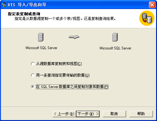 7、选择“在SQL Server数据库之间复制对象和数据”方式,点“下一步”继续